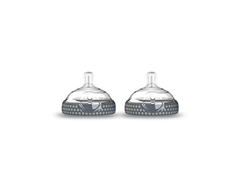 Baby Brezza Baby Bottle Replacement Parts - 2 Pack of BPA Free Replacement Tops - Slow Flow Nipple - Grey