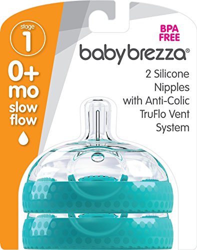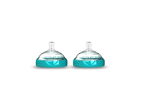 Baby Brezza Baby Bottle Replacement Parts - 2 Pack of BPA Free Replacement Tops - Slow Flow Nipple - Blue