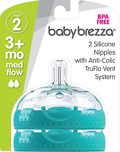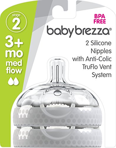 Baby Brezza Baby Bottle Replacement Parts - 2 Pack of BPA Free Replacement Tops - Medium Flow Nipple - Grey