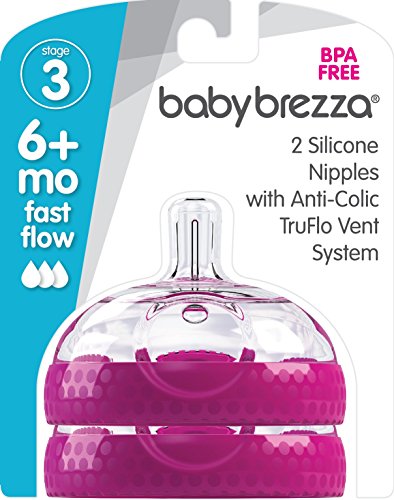 Baby Brezza Baby Bottle Replacement Parts - 2 Pack of BPA Free Replacement Tops - Fast Flow Nipple - Pink