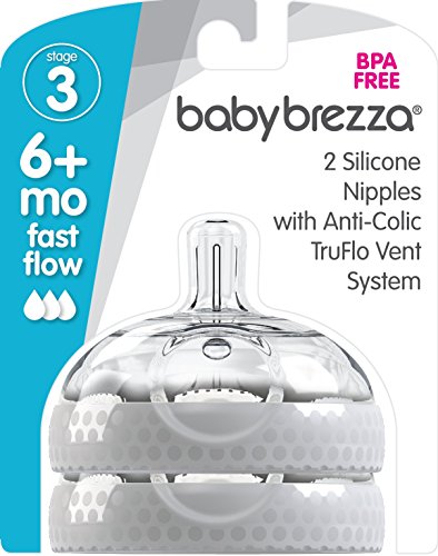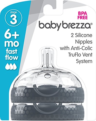 Baby Brezza Baby Bottle Replacement Parts - 2 Pack of BPA Free Replacement Tops - Fast Flow Nipple - Grey