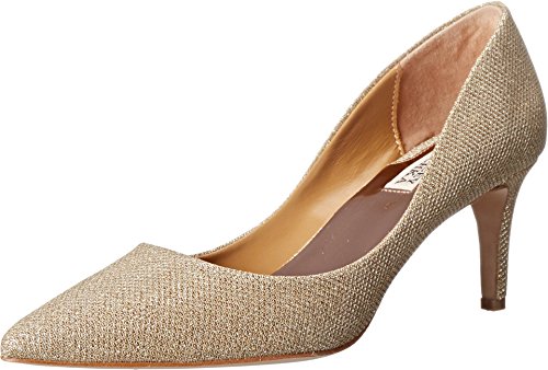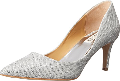 Delicate, scale-textured mesh details these lustrous lamé Badgley Mischka pointed-toe pumps. Covered heel. Leather sole.