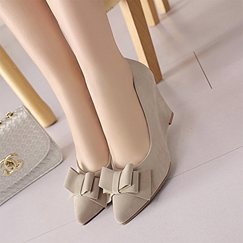 Binding : Apparel Product Description This pair of pumps shoes is designed with pointy toe and wedge heel, which keeps the shoes chic and sweet. The slip on design makes the shoes convenient to wear for you. Besides, the decoration of bowknot makes the shoes more delicate. You will feel more comfortable with the mid wedge heels. In the meantime, you will look more beauty and elegance when you wear the pairs. The shoes are suitable for work, travel, street and many various occasions. And you can choose different colors to match your different outfits. 0