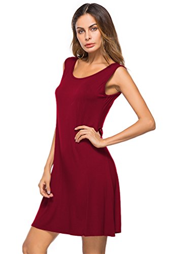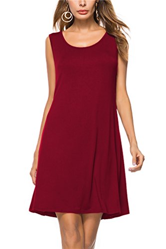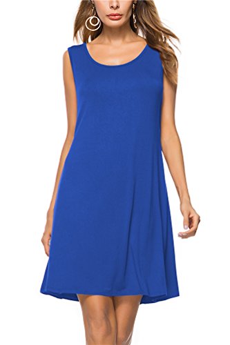 VOGRACE Women's Basic Sleeveless Casual Loose Swing Tank Dress Sundress Fabric: 65% Cotton/35% Polyester