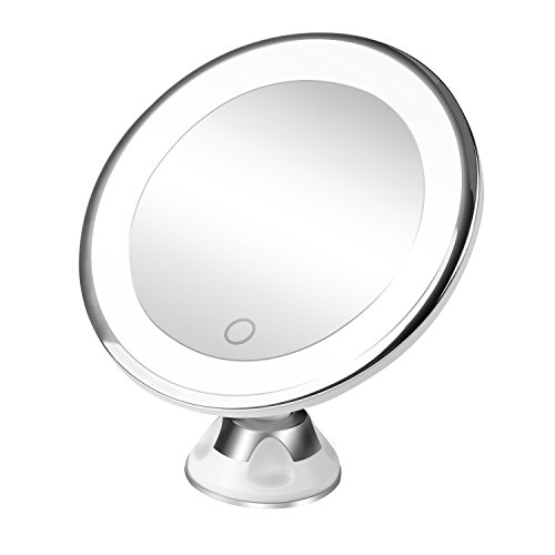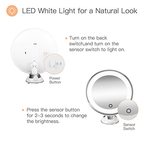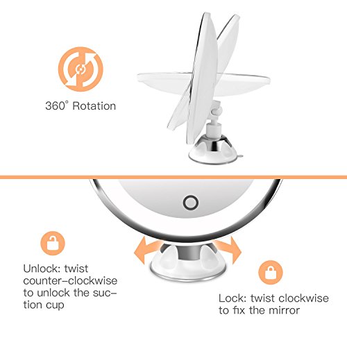 LOCKING SUCTION CUP: Attached the light up mirror anywhere with a smooth, flat, clean surface, such as on a table, wall, window, and large mirror,suitable for women makeup or men shaving.