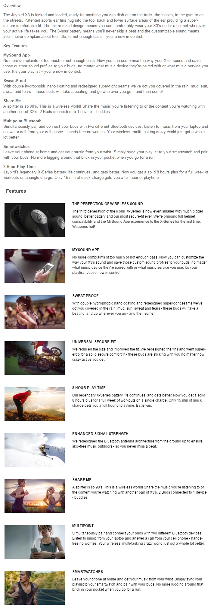 Jaybird X3 Wireless In-Ear Headphones - Sparta