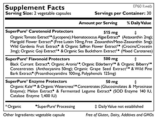 -. Feature : Nourishes and protects healthy vision & eyes / Supports healthy visual acuity & retinal health / 15+ SuperPure® plant extracts: Made without the use of harsh solvents / Contains lutein, zeaxanthin, astaxanthin, black currant extract, lycopene, anthocyanins and more! / Bonus protection for healthy, radiant skin