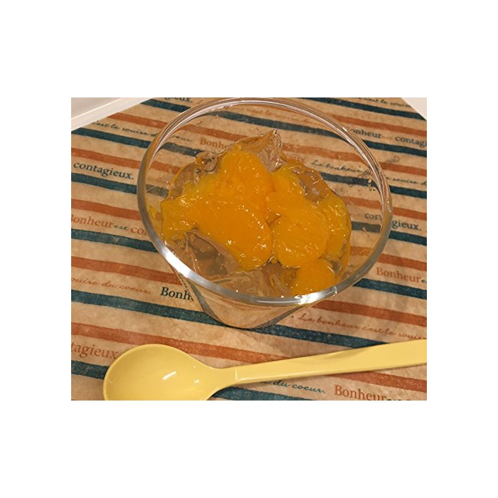 원재료:과육 시럽 절임(귤,백도,파인쥬스 애플,체리)고, 이성화 액당,설탕,망고 퓌레,딸기 시럽,양주,겔화 제(증점다당류)고, 신맛료,향료,산화 방지제(V.C)고, 유산 칼슘,감미료(《스쿠라로스》)고, 착색료(lak)