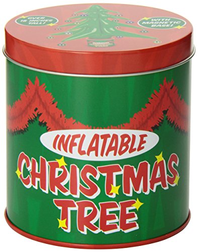 O Christmas tree, O Christmas tree, how easy it is to inflate you. That's right, inside of this handsome 3-5/8" (9.2 cm) round x 4" (10.2 cm) tall tin is a deflated vinyl Christmas tree. Just pull it out, blow into the valve and in the time it takes to sing the first verse of Jingle Bells, you'll have a fully inflated, 18-1/2" (47 cm) tall faux pine tree. It's a Christmas miracle in a can. Includes a magnet in the base to stand it on top of the tin and a hole on the end of each limb to hang ornaments. Ornaments not included.