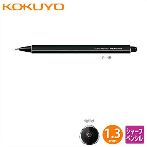 KOKUYO Enpitsu Mechanical Pencil, 1.3mm, Black (PS-P101D-1P) + Mechanical Pencil Lead, 1.3mm, B, 16 Leads (PSR-CB13N) Set(Japan Import) [Komainu-Dou Original Package]