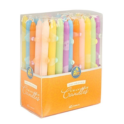 [Product Information]- A RAINBOW OF DECORATED LIGHTS: Round “beads” & thick, subtle “swirls” & strokes jazz up these Chanuka candles. Blue, orange, yellow, light green, pink & purple come in this variety pack.