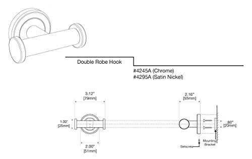Gatco 4295A Latitude II Double Robe Hook, Satin Nickel