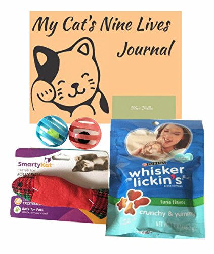 Cat Holiday Christmas Kitty Stocking Gift set Filled with Toys, Treats and a Journal for your furry friend.