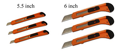 SNL Retractable Razor Utility Knife Set, 6 Inch, Orange, 3 Pack