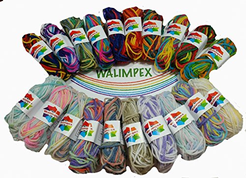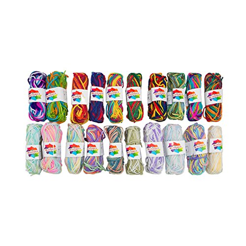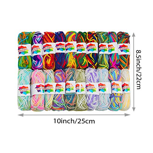 This yarn pack includes 20 mixed colour skeins (10 bright colors and 10 deep colors). Each skein weight is about 12.5 grams (0.44oz). Each skin is approximately 25 meters (27 yards) long.