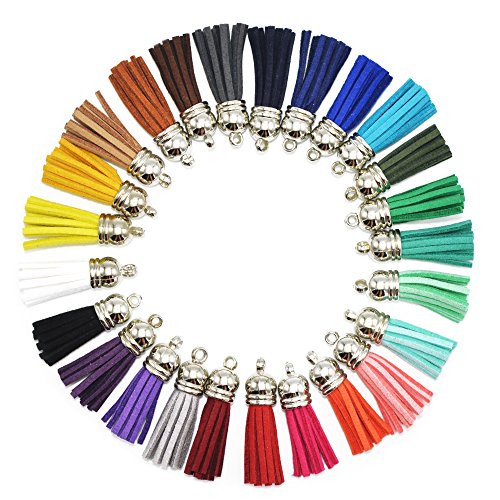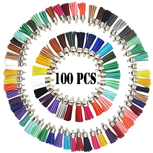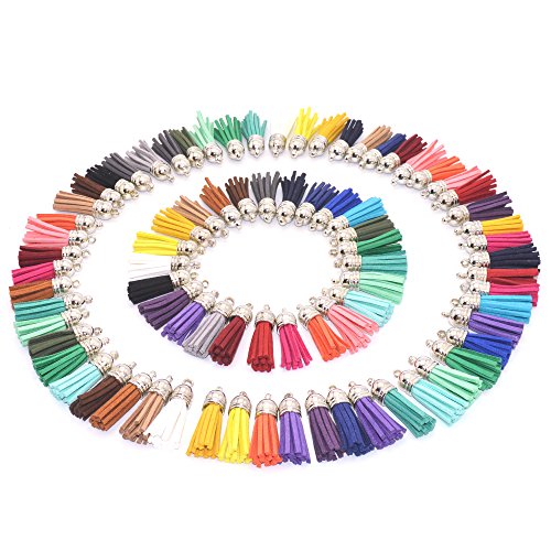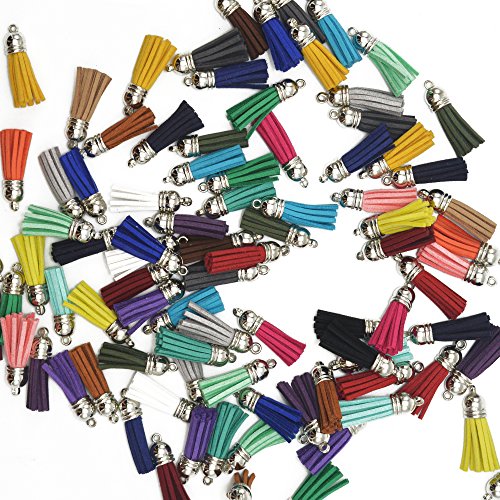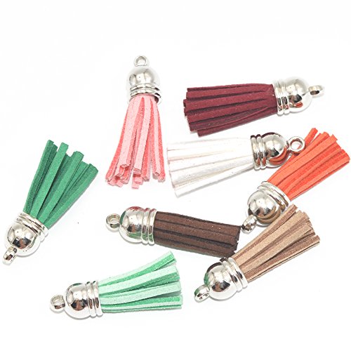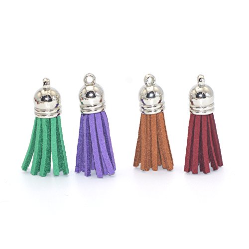 100pcs 40 mm Leather Tassel Pendants Faux Suede Tassel 25 Colors, Doubletwo Mixed Tassel Pendants with Caps for Key Chain Straps DIY Accessories