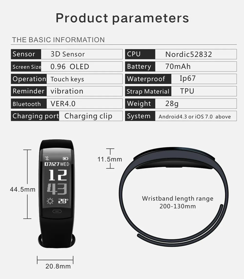 Function:Blood Pressure,Passometer,Blood Oxygen,Heart Rate Tracker,Call Reminder