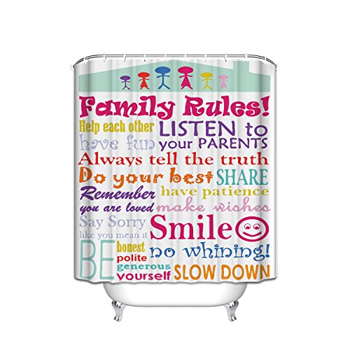 YEHO Art The Stupell Home Decor Collection Family Rules Autumn Colors Fabric Shower Curtain Bathroom Decor Sets with Hooks 72X84 inches