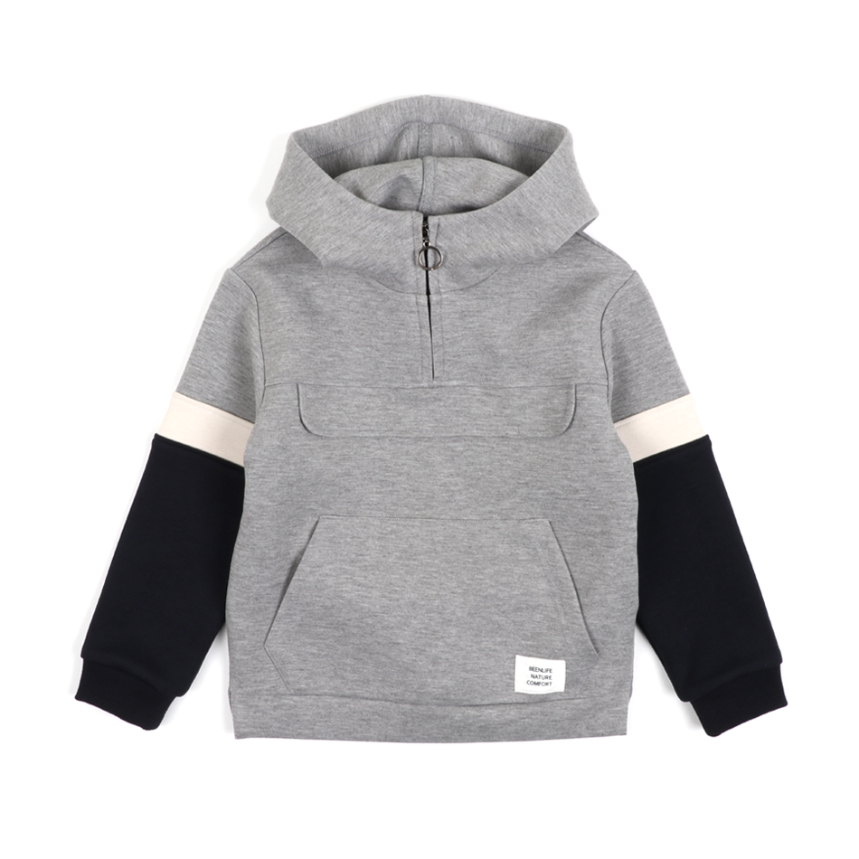 고급스러운 멜란지 그레이 컬러와 베이지,네이비 컬러의 배색이 스포티한 감성을 보여주는 후드 티셔츠 입니다. 가볍고 부드러운 네오플랜 소재를 사용하여 기분 좋은 착용감으로 활동적으로 입을 수 있는 아이템입니다. 반오픈 지퍼 여밈으로 편안하게 착용할 수 있으며, 다양한 스타일링을 연출 할 수 있습니다. | ||||||||