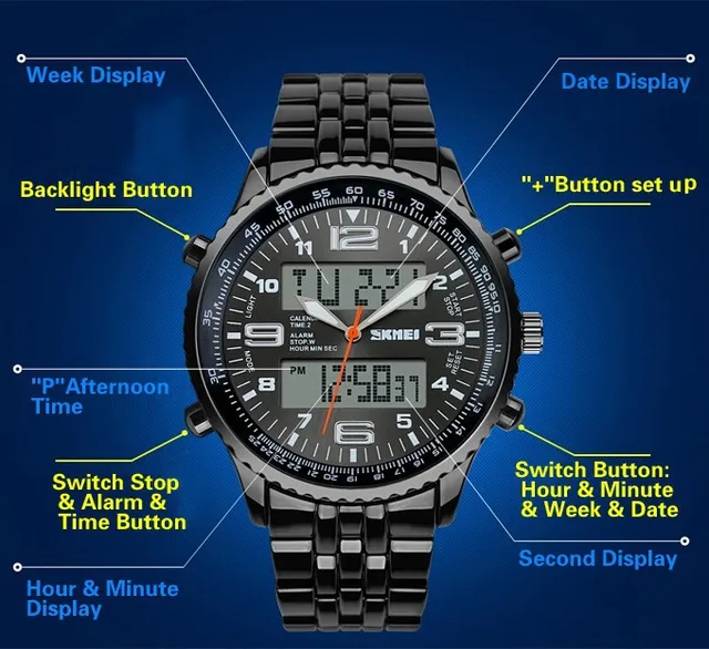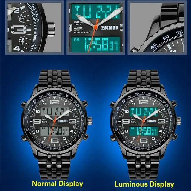 | [해외] 뜨거운 Skmei 브랜드 LED 디지털 시계 남성 럭셔리 브랜드 군사 쿼츠 시계 relogio masculino 전체 스테인레스 스틸 남성 손목 |
