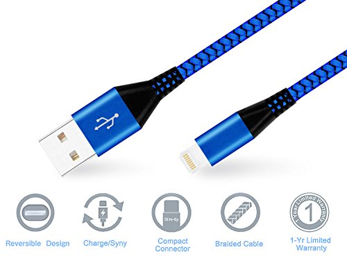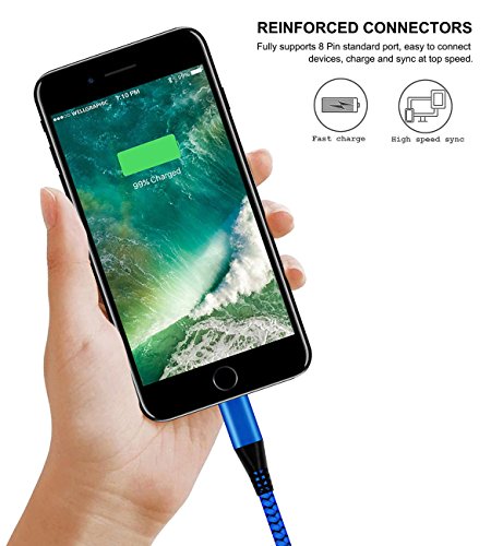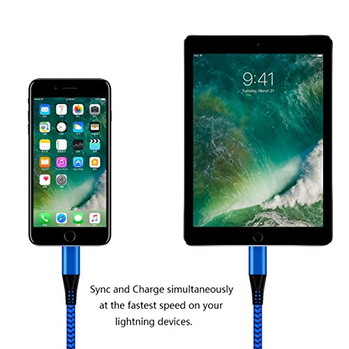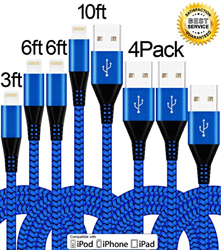 Beyoner 4 Pack 3ft 6ft 6ft 10ft iPhone Charging Cord USB Cable Nylon Braided Lightning Cord for iPhone 7, 7 Plus,SE, 6,6s,6 plus,6s plus,5c,5s,5,iPad Air,Mini,iPod Touch (Blue)