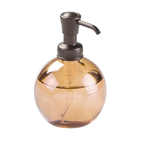 InterDesign Hamilton Glass Soap Dispenser Pump for Body Moisturizer, Liquid Hand Soap, Sanitizer or Aromatherapy Lotion - Sand/Bronze