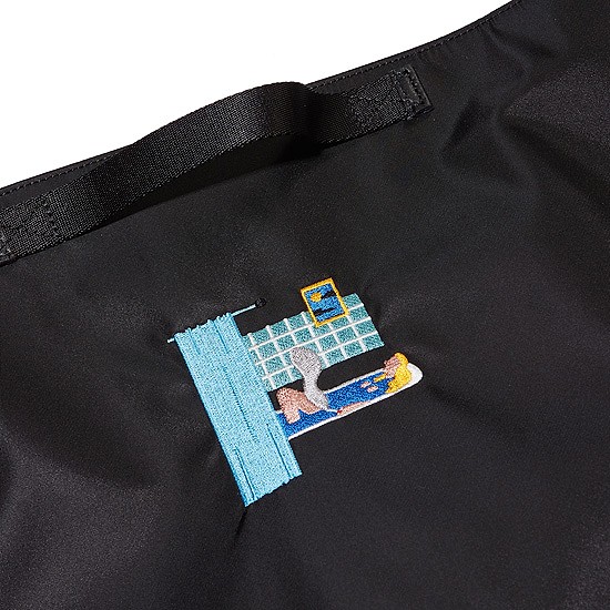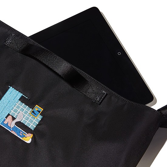 사생활이 노출된 모습을 자수로 표현한 유니크한 토트백.