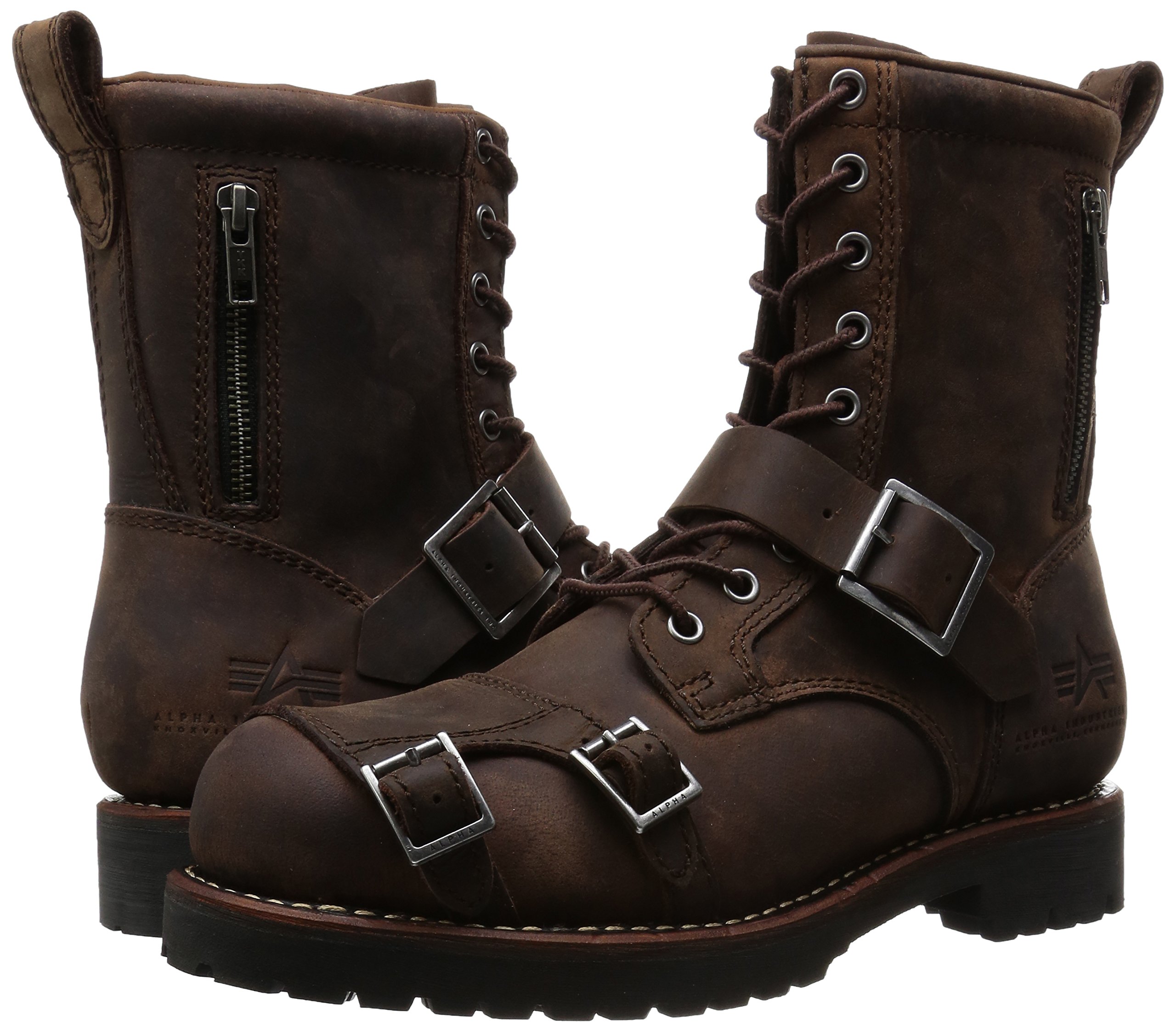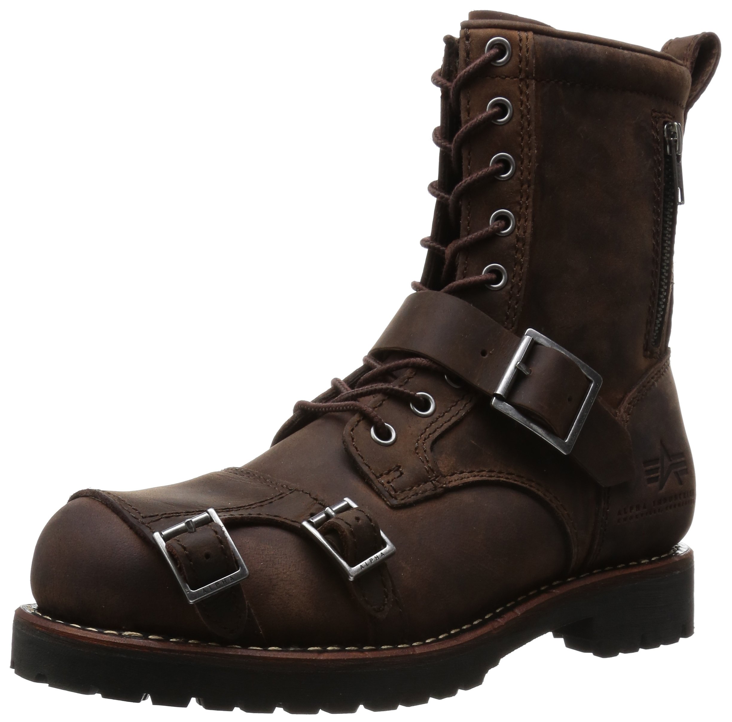 ALPHA INDUSTRIES 9 HOLE BOOTS which double buckle shift guard of the upper part and imitation outer side zip become design accent.