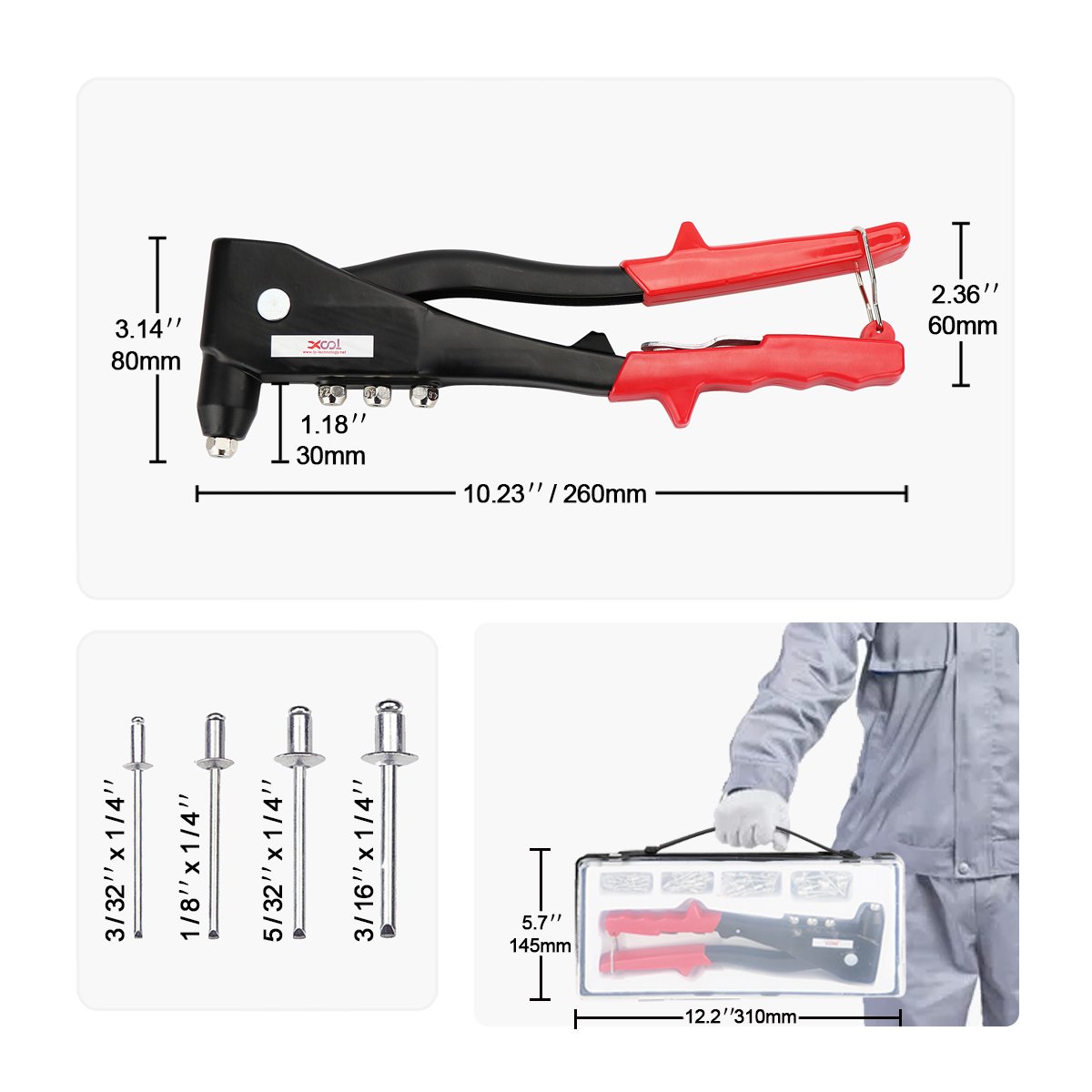 1 * PC hand riveter, equipped with heads of four sizes
