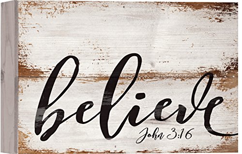 Believe John 3:16 White Wash 10 x 7 Inch Solid Pine Wood Boxed Pallet Wall Plaque Sign