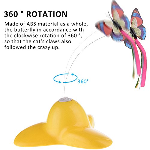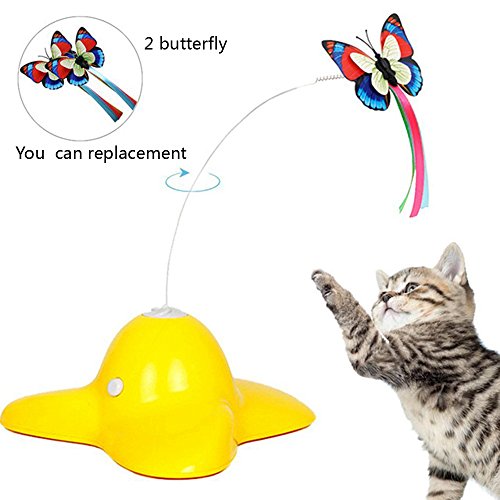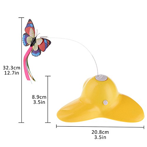 Feature - Material: ABS, PC and Steel wire. - Size: About. 18.5 * 20 * 8 cm / 7.28 * 7.87 * 3.15 (L * W * H). - The base is unique and beautiful, and the butterfly looks real. -Spinning action stimulates the cat's natural instincts and keeps cats guessing. -This toy can avoid the cat from scratching furniture and floors. - Strengthen the friendship between you and your cat. Note This cat toy is for pets only, please keep out of reach of children because it contains small parts. Pets should be supervised when playing with this toy. Remove toy from pet if any part as loose or detached. Store out of pet's reach when not in use.? Remove all packaging and dispose properly. Make sure that you are beside by cat when it's playing with this toy to avoid cat swallowing butterfly parts or toy hurting your cat.? Do not mix old and new batteries. Do not mix alaline, standard ( carbon-zinc) or rechargeable ( ni-cad, ni-mh, etc) batteries. Package Include: 1 x Electric Cat Toy 0 |