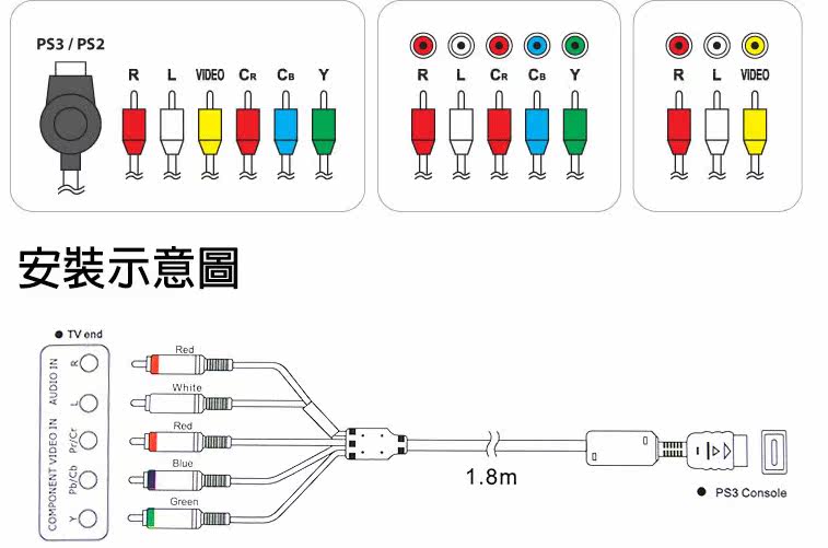Products suitable for PS2, can also be used PS3, but using in the PS3, PS3 can not play the highest clearance side, PS3 better to use H DMI line, or the original SONY color line,