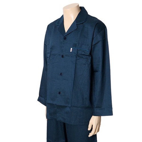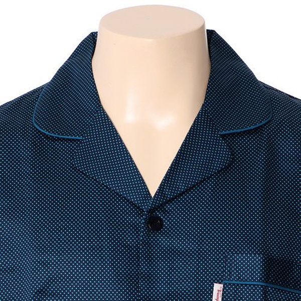 80수 남성 장팔 파자마입니다. 80수 면으로 촉감이 부드러우며 블루컬러의 청록색의도트무늬가 있어 귀여움을 줍니다. 소매와카라,주머니에 포인트를 주었습니다