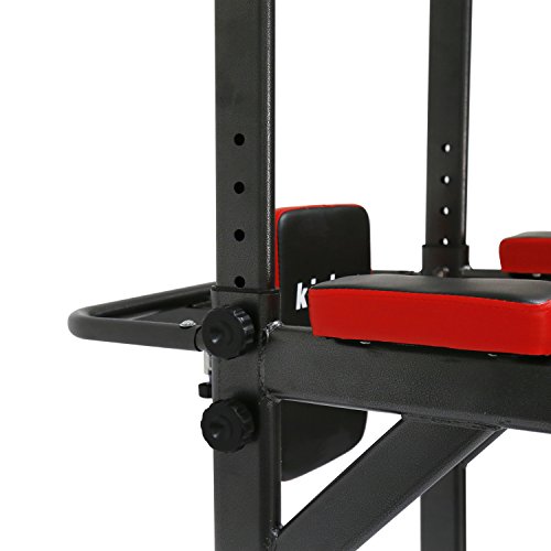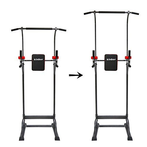 We live in a busy world, Kinbor with scientific and exquisite design, will help you effectively achieve the goal of physical exercise, perfect for home exercise. The Kinbor Power Tower Fitness Station delivers the ultimate aerobic workout. It offers workout stations for upper and lower body. Ergonomic design for extra comfort and perfect fit, really suitable for adults or children to grow workout, fitness enthusiasts. You deserve it ! Specification: -4 workout stations on this Power Tower for strengthening workouts ? Pull ups -- Tone and strengthen your back, arms, shoulders and abs muscles for the perfect upper body workout. ? Arms bent and stretched -- Multiple grip capability will help you strengthen your back, lats and biceps, through different hand positions. ? Parallel bars -- Mainly strengthen the abdomen, chest, biceps and other parts of the training, help you have a perfect abdominal muscles. ? Push ups -- Sculpt your chest and shoulders with the push-up station. The raised station allows you to perform push-ups with a neutral wrist, decreasing the strain on the wrist joints. -Materials: Steel Pipe and Imitation Leather -Adjustable Height: 90.5 - 89 - 87 - 85.4- 83.9- 82.3- 80.7- 79.1- 77.5inch -Dimensions: 25.6 x 30.1 x 90.5 inches (L x W x H) -Back Cushion Size: 9.6 x 12.2 x 1.57(W x H x Thickness) -Product Weight: 84 lbs -Weight Capacity: 265 lbs 0 |