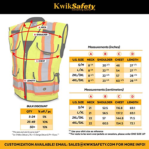 - CUSTOMIZATION: Our KwikSafety Class 2 Executive Deluxe Safari Safety Vest are available in unisex sizes which make them perfect for customization and our unisex size chart will help you determine your perfect fit! For customization, our minimum order quantity is 24 pieces in order to help you receive the best price. Also, our standard shipping is FREE.