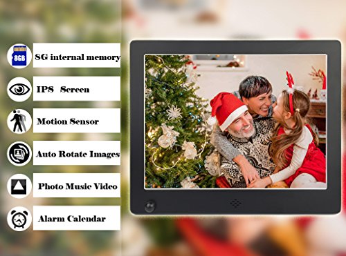 Studio : yueyong Publisher : yueyong Binding : Electronics Product Description Tired of Digital Picture Frames made of plastics? poor angle of view? or limited storage capacity? Why not try Vefaii New-Release 8 Inch Digital Photo Frame, it is made of alumi frame and comes with a Greeting Card IPS full angle view 8G Internal Storage, A decent gift for Birthday, Wedding and Christmas Day ! Unique Features : 1. Intuitive User Interface: including a Calendar Clock 2. IPS screen, full viewing angle, support 1080P 720P video and photos. 3. 8Gb Internal memory, Metal frame with matte coating,narrow bezel 4. Playback Photos and Videos within same Slideshow 5. Display photos the way you want to see them: A-Z, mixed, Shuffle 6. Fast processor: View thousands of photos and videos from your inserted device. 7. Auto-rotate: photos can be auto-rotated at the right orientation, please resize oversized pictures so that processor can auto-rotate smoothly. Multiple File Types Supported Photos: JPG, GIF, PNG (Photos with pixels 1024*768 will be best for viewing) Music: Most MP3 WMA MP4 Video:RM,RMVB,WMV,ASF,AVI,MP4,MOV (Video Max resolution is 1280*800) A Breeze to Get Started The Vefaii Digital Photo Frame 8 inch is the simplest solution to all your digital photo needs. Just plug in your USB stick or SD/SDHC card and let your photos play. It's that easy! This frame is perfect for everyone from professionals, to parents and grandparents who just want a frame that works with the convenience of not having to operate it.