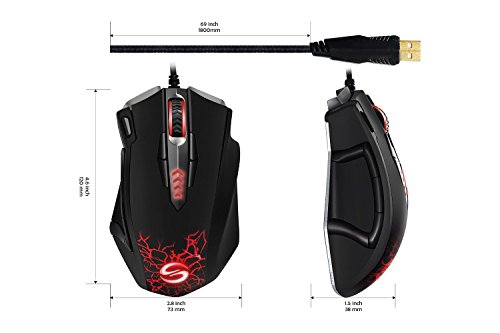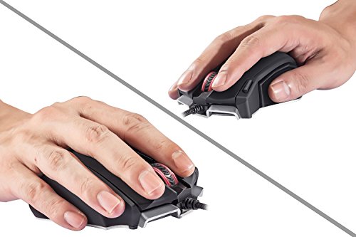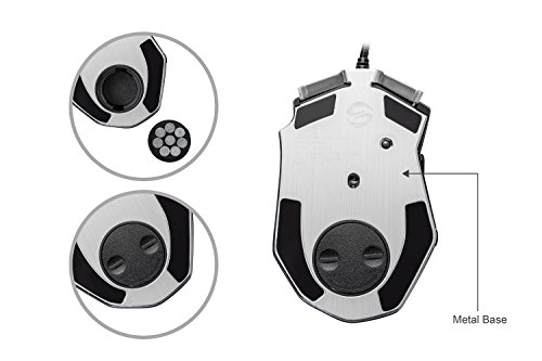 -. Feature : Built with gamers in mind: up to 16400 DPI, 12000 FPS, 1000 Hz polling rate, 30G acceleration, 100-150in/s cursor speed, and an Avago sensor. Omron micro switches provide crisp, firm clicks. Special Aluminum Metal Base adds heavier feel during game playing. / 13 programmable buttons, 5 Savable memory profiles each with a distinct light color for quick identification, an 8-piece weight tuning set (2.4g x8), and over 16 million LED color options. The LED may be disabled as per your preference. / Durable smooth TEFLON feet pads and contour body for ultimate gaming control. High-end features including 14 buttons, power button, breathing light in 5 colors modes and 5 side buttons. / Ergonomic Right Handed Design with Rubber Painting Surface that can keep your grip firm during gameplay. 6ft braided-fiber cable with gold-plated USB connector ensures greater durability. / Special Setting Switch Button on the back side of the mouse let you take command with maximum efficiency; 18-Month Manufacturer's Warranty.