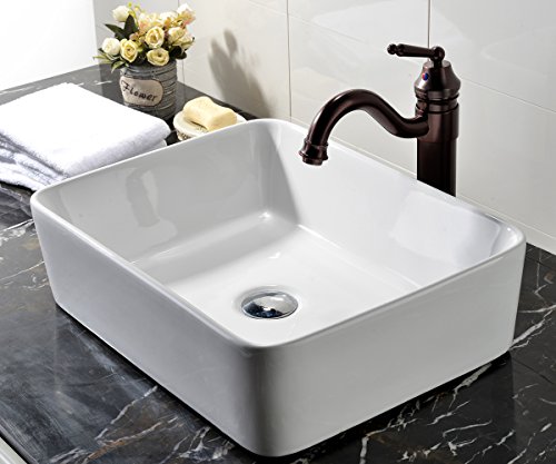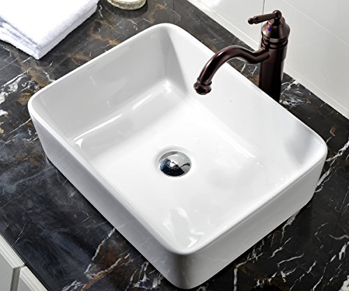 VCCUCINE Rectangle Above Counter Porcelain Ceramic Bathroom Vessel Vanity Sink Art Basin