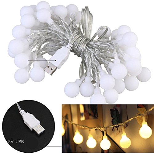 40LED Globe Ball Warm White String Lights- USB-Powered, Decor Nova 13 Feet Lights for Outdoor Camping Tent, Christmas Decorations, Gardens, Homes, Wedding, Festival Party LG010UN