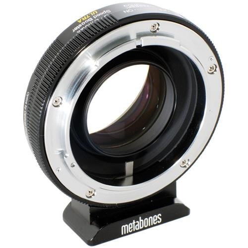 Studio : Metabones Publisher : Metabones Binding : Accessory Product Description The Metabones Canon FD Lens to Sony E-Mount Camera ULTRA Speed Booster improves upon the original Metabones Speed Booster with a 5 element/4 group optical design that incorporates ultra-high refractive index tantalum-based glass for improved sharpness and reduced distortion and vignetting. The Speed Booster ULTRA allows a full frame Canon FD lens to be mounted to an APS-C format E-Mount camera and in doing so, increases the angle of view and increases the maximum aperture by approximately one f/stop.When a lens intended for full frame sensors or 35mm film is mounted to a camera with an APS-C sized sensor, it transmits a larger area of light than the smaller sensor was built to accept and therefore the effective angle of view of the lens increases. The Speed Booster condenses light from the lens and projects it onto the APS-C sensor allowing the sensor to utilize all of the lens' light and effectively reduces the crop factor of and APS-C E-Mount camera from 1.5x to 1.07x, producing a full-frame angle of view with an APS-C sensor. A corresponding increase in the maximum aperture of one f/stop makes the lens more effective in low-light situations and able to create a shallow depth of field.Metabones Speed Boosters are quality made using precision-machined brass with chromium plating on both the camera body and the lens side of the booster in order to ensure smooth mounting, quality aesthetic and durability. This adapter has a detachable tripod foot that is compat 0