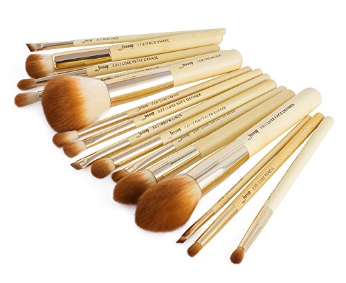 Jessup Brand Beauty 15pcs Bamboo Set Makeup Brushes Tools Kit Foundation Eyeshadow Lipstick Power Definer Buffer Cosmetic Handmade Fiber Hair Brushes T142