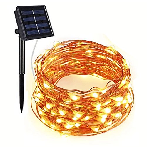 Solar Twinkle Decor Lights 72ft 200 LED Copper Wire String Lights,LRCXL 8 Modes Starry Lights, Waterproof IP65 Fairy Lights for Outdoor, Patio, Lawn, Landscape, Fairy Garden(Warm White)