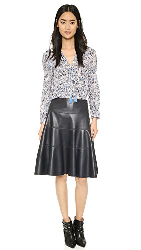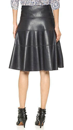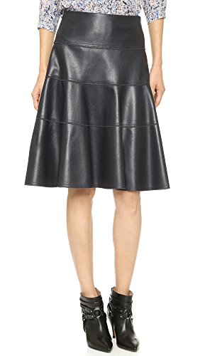 Rebecca Taylor Women's Vegan Leather Flounce Skirt, Navy, 4