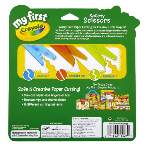 You'll have "ouch-free" paper cutting for preschoolers with these 3 colorful Safety Scissors. The rounded tips and plastic blades only cut paper and card, not fingers or hair! Plus, each pair of scissors has a different cutting pattern-straight, wavy and zigzag. Includes 3 pairs of Safety Scissors.Feature