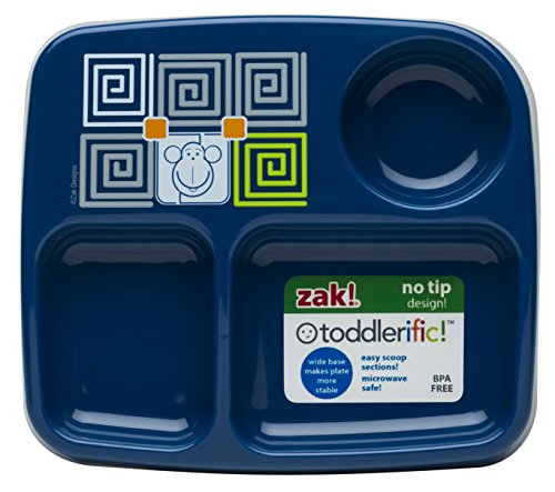 -. Title : Zak! Designs Toddlerific 3-Section Toddler Plate with Blue Monkey, No-tip Wide Base, Break-resistant and BPA-free Plastic