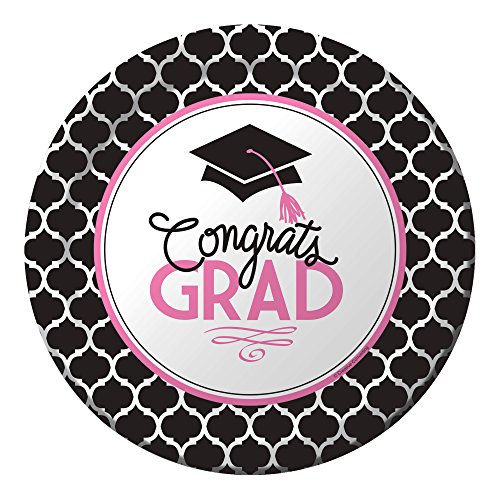 Creative Converting 18 Count Sturdy Style Paper Lunch Plates, 7", Glamorous Grad, Black/White/Pink