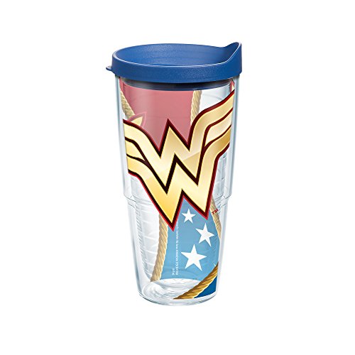 Tervis Warner Brothers Wonder Woman Colossal Wrap Tumbler with Blue Lid, 24 oz, Clear