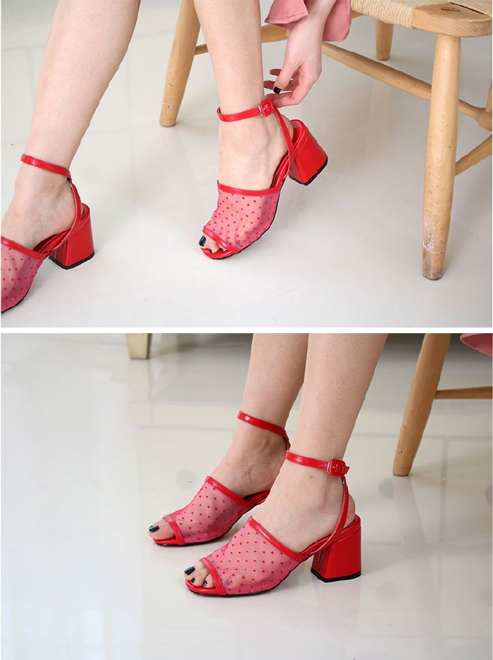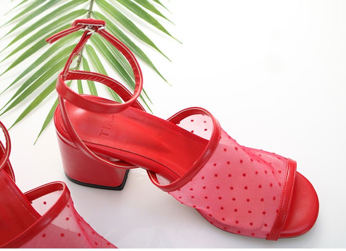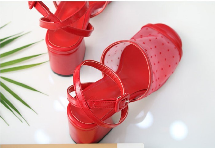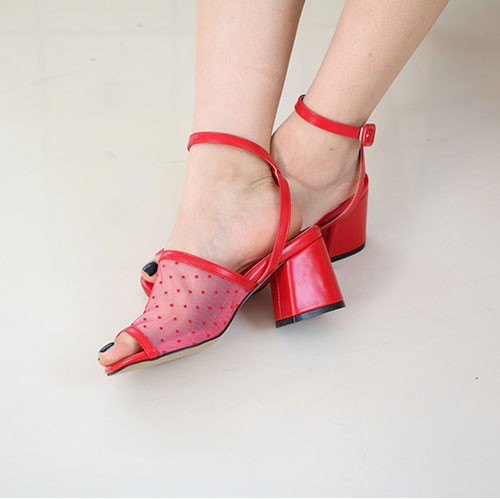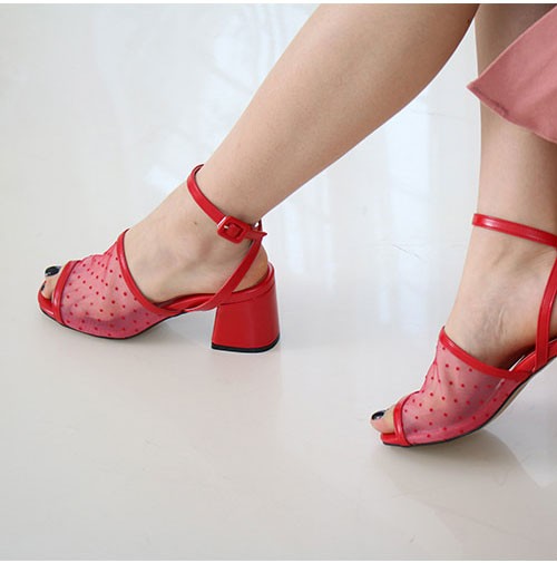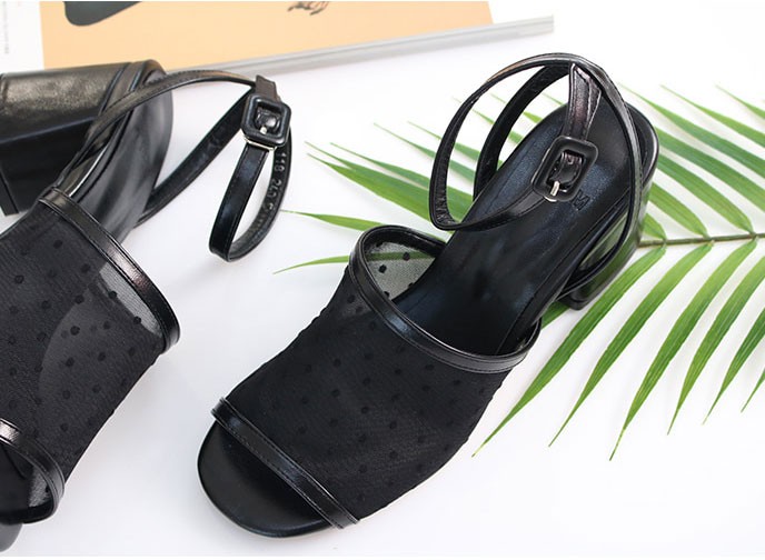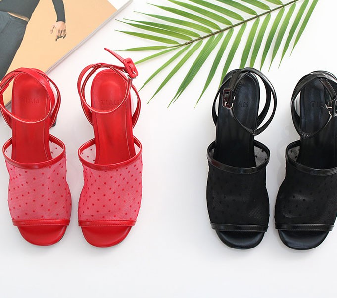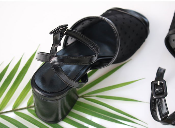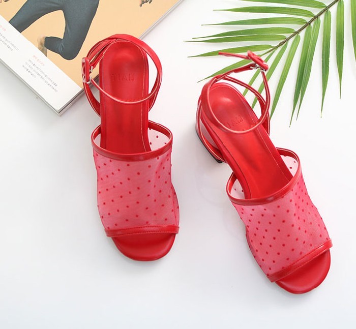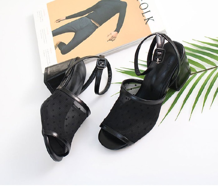 商品名:サンダル レディース チャンキーヒール 太ヒール アンクルストラップ チュール 2018 春 ファッション 靴 婦人靴