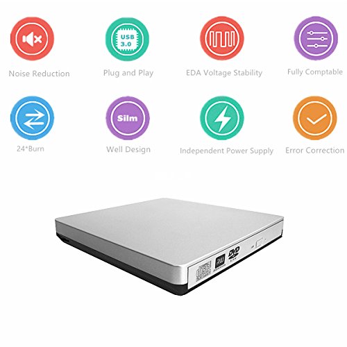 USB 3.0 External CD / DVD Drive Compatible with Apple Macbook / Mac, Windows Laptops / Desktop / PC and Linux etc.
