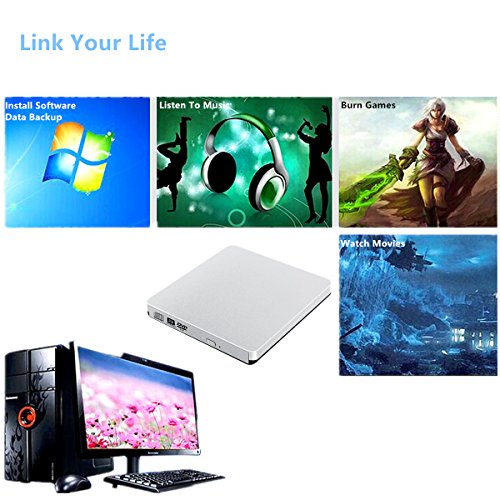 PLUG AND PLAY:Easy to use,This external USB 3.0 CD/DVD writer burner/player is a perfect companion for computers without the internal drive. With this CD DVD-RW Drive you can record CD, music, videos, installing software or create CD/DVD backup disc,recording happy moment